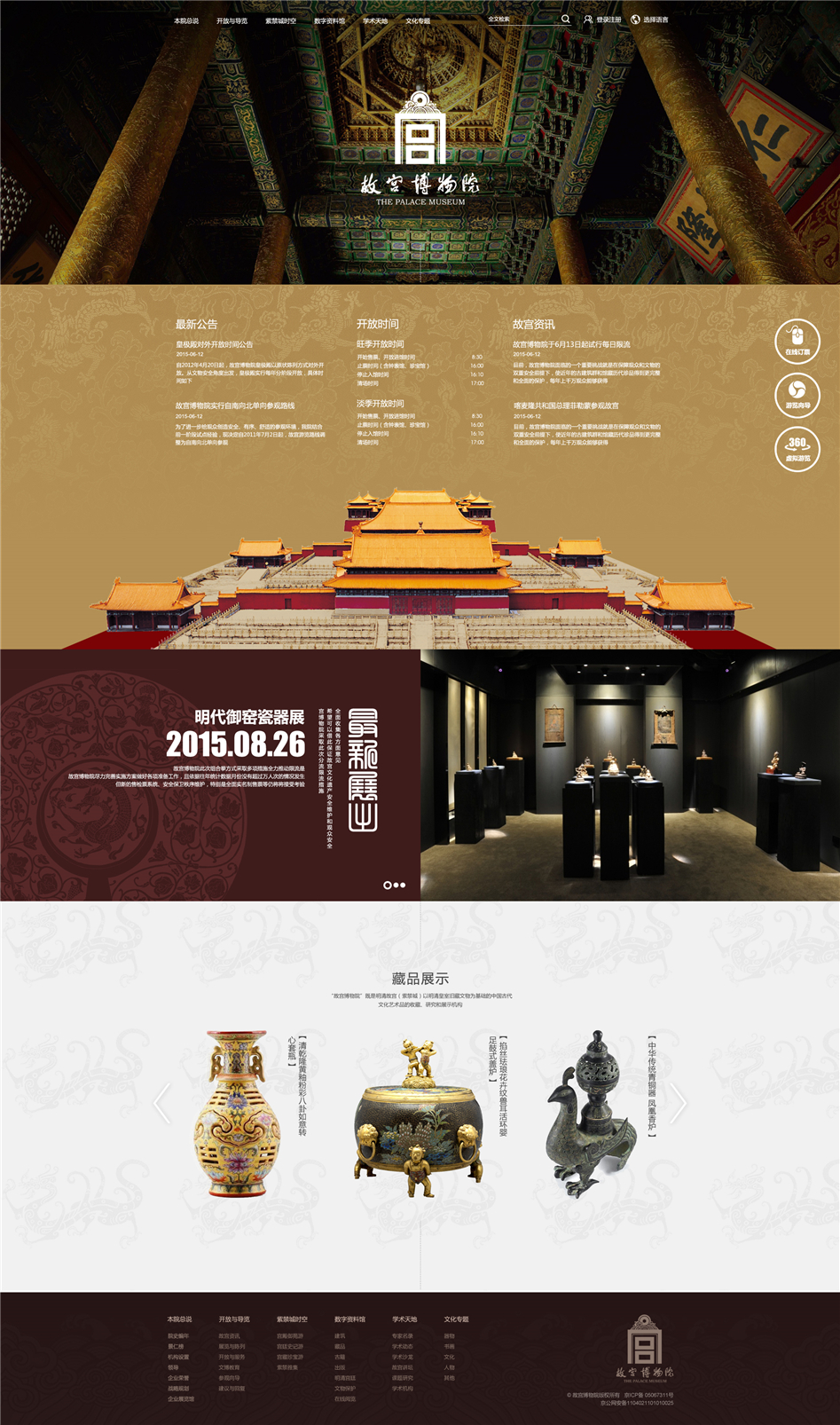 設計理念: fenxingkejijingguotoubiaodefangshirongxingzhongbiaogugongbowuyuandeguanfangwangzhanjianshe,shejifenggegaoduandaqi,kuangjiajiegouqingxi,xiangdazhonggengduodezhanshilegugongbowuyuandexinxi,tishenglegugongbowuyuanwenhuachuanboliliang。