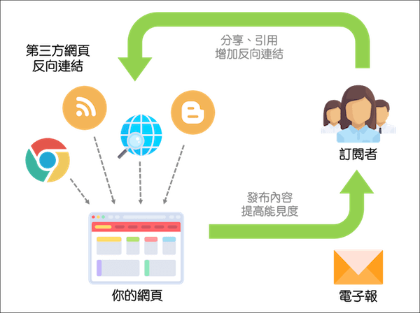 透過電子郵件營銷,當訂閱者分享和引用網站內容,增加反向鏈接的數量。