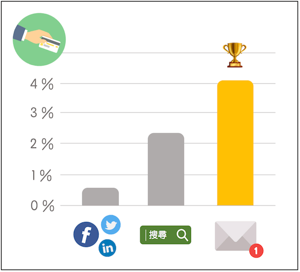 來自電子郵件的使用者進行消費的比例和轉換率,高於來自社群媒體和搜索引擎的使用者。 (Icon from flaticon)