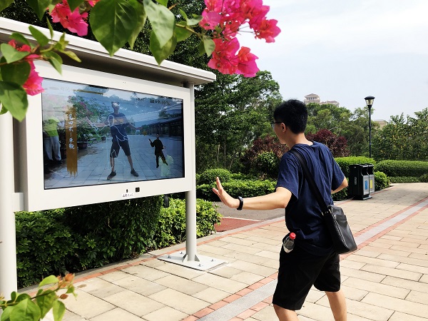 接下來我們去體驗那裏的AR太極,AR太極是傳統的太極與AI和AR技(ji)術(shu)相(xiang)結(jie)合(he),實(shi)現(xian)麵(mian)對(dui)麵(mian)實(shi)時(shi)的(de)虛(xu)擬(ni)教(jiao)學(xue)。參(can)與(yu)者(zhe)隻(zhi)需(xu)要(yao)按(an)照(zhao)智(zhi)能(neng)大(da)屏(ping)提(ti)示(shi)舉(ju)起(qi)右(you)手(shou),通(tong)過(guo)人(ren)工(gong)智(zhi)能(neng)領(ling)域(yu)人(ren)體(ti)肢(zhi)體(ti)識(shi)別(bie)技(ji)術(shu)判(pan)斷(duan)後(hou)自(zi)動(dong)開(kai)啟(qi)互(hu)動(dong)。過(guo)程(cheng)中(zhong)會(hui)自(zi)動(dong)識(shi)別(bie)並(bing)計(ji)算(suan)參(can)與(yu)者(zhe)動(dong)作(zuo)並(bing)給(gei)與(yu)相(xiang)應(ying)分(fen)數(shu),無(wu)論(lun)您(nin)會(hui)不(bu)會(hui)太(tai)極(ji)拳(quan),跟(gen)著(zhe)這(zhe)位(wei)“太極大師”都能打得很好。AR太極將會給您帶來無限的運動樂趣。