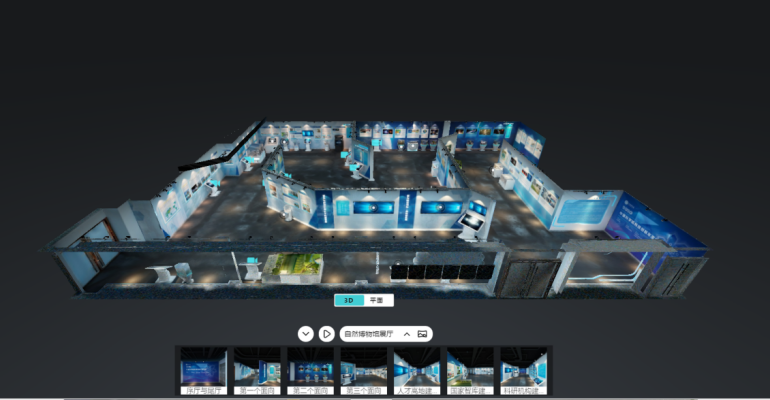 720度環視的效果,能給人以三維立體的空間感覺,使瀏覽者猶如身臨其境,隨意轉動視角,即可觀看任何場景;點擊各個通道處的方向箭頭,就可以進入相應展區參觀展覽。線上展館還可通過先進的語音合成技術,提供展覽講解。