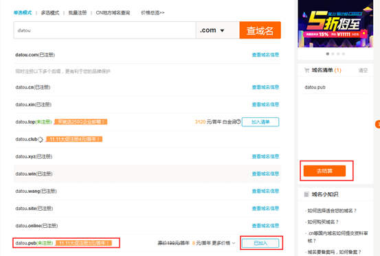 點擊 進入到域名種類查詢界麵。