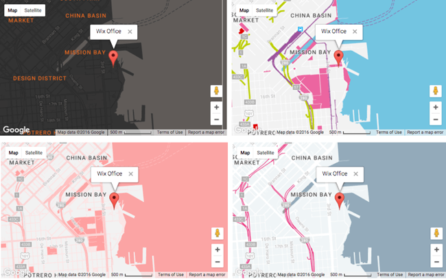 當下,每個習慣網絡消費的用戶都已經習慣於查看Google Map的紅色指針。問題是,大多數網站的地圖看起來完全一樣。你需要變化。一個提示,你可以嚐試自定義地圖,與設計形成互補。