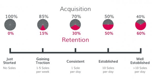 剛起步 當你的商店剛起步時,你需要做的隻有一件事情:盡可能的吸引顧客。在這個時間點你的可以完全不用管顧客留存的問題(對不起,因為你沒有顧客…)。你必須盡可能的運用策略來幫助你打增加顧客數量。