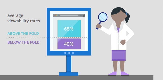 剛剛有提到,廣告放置於使用者剛進入網站無需卷動就能看到的顯眼區域(Above the fold) 最容易被看見,但放在需下拉網頁才能看到的區域(Below the fold) 就看不到嗎?研究指出,還是有機會被看到的,但機率相較於顯眼區域低,分別是68% 比40%。